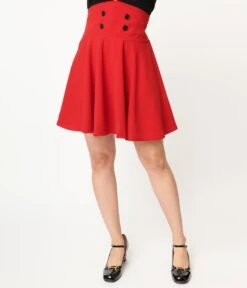 Red High Waist Swing Skirt