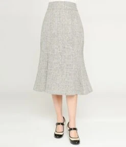 Unique Vintage Beige & Baby Blue Tweed Tina Trumpet Skirt