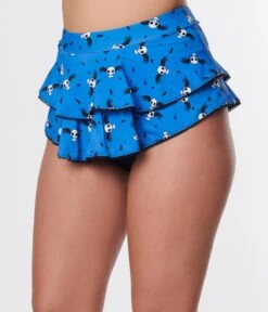 Corpse Bride X Unique Vintage Blue & Flying Skulls Ruffle Swim Bottom