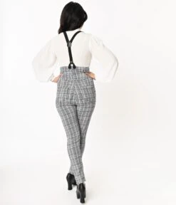 Unique Vintage Navy & White Gingham Monroe High Waist Swim Bottom