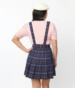 Unique Vintage Navy & Pink Plaid Monroe High Waist Swim Bottom