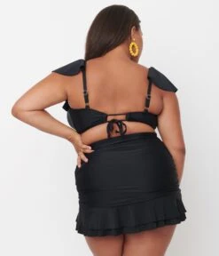 Unique Vintage Plus Size Solid Black Georgiana High Waist Swim Bottoms
