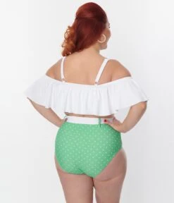 Unique Vintage Plus Size Yellow & White Polka Dot Cape May Swim Bottoms