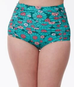 Unique Vintage Tropical Print & Red Hibiscus Monroe High Waist Swim Bottom
