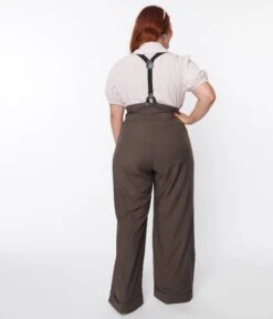 Unique Vintage Plus Size Blue Gingham Ruffle High Waist Swim Bottom