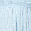 This absolutely darling midi dress is crafted in a baby blue woven. The smocked bust is framed with floral diamond detailed sleeves matching its skirt. Complete with side pockets!