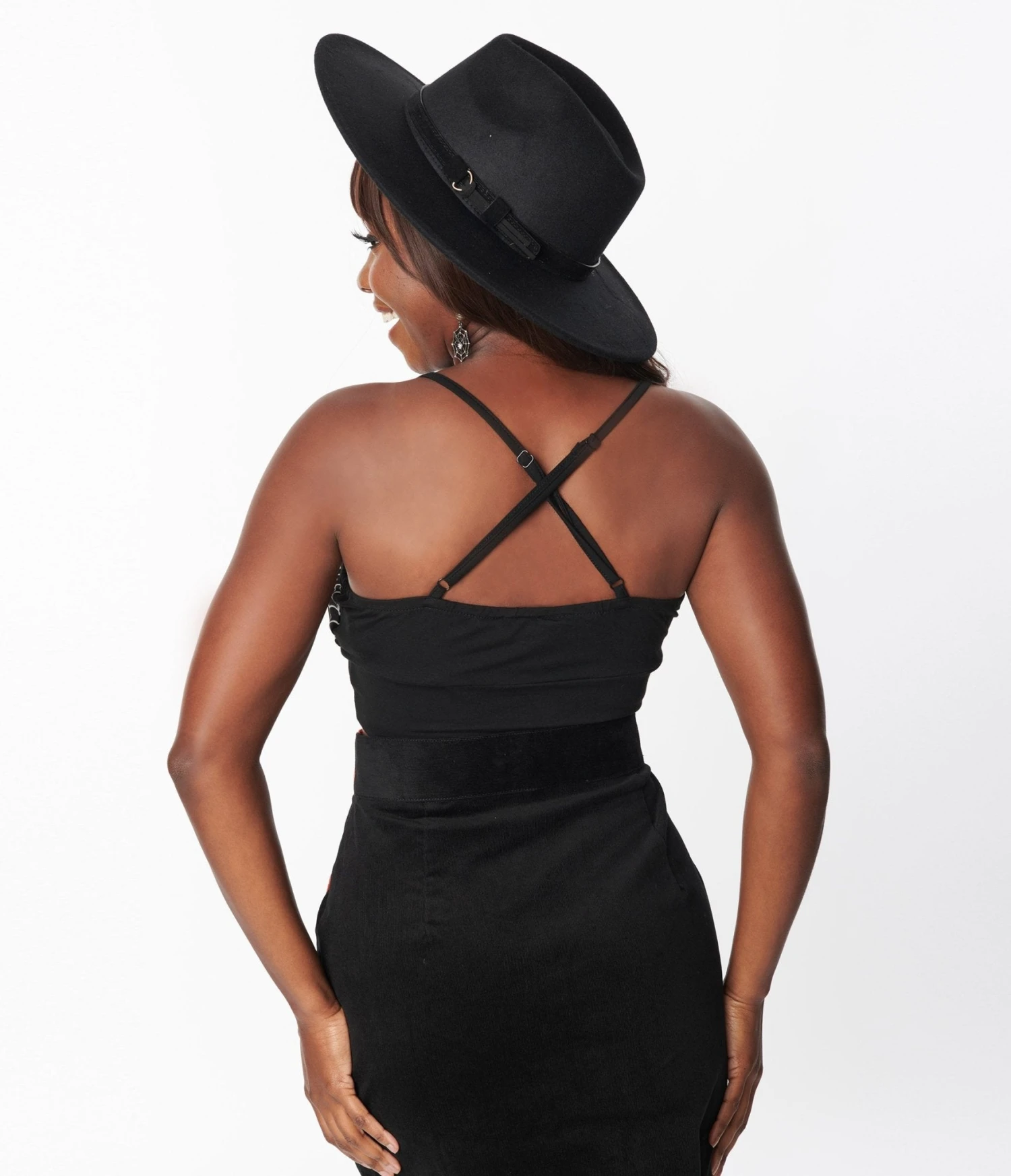 Get ready to rock the night with this daring crop top! This bad girl boasts a lovely black color, perfectly complemented by mysterious white spider webs adorning the top corners. The alluring V-neckline and adjustable spaghetti straps guarantee your comfort while adding an extra touch of sass.