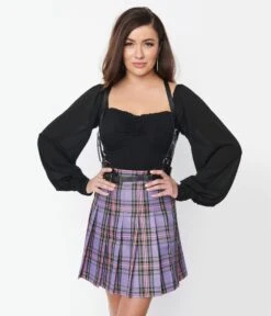 This retro inspired belt is crafted in black leatherette and features adjustable suspenders and a buckle adjustable waist.