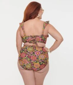Unique Vintage Plus Size Kaleidoscope Floral Cape May Swim Bottoms