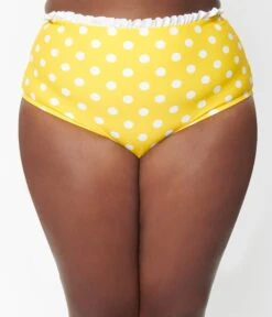 Unique Vintage Plus Size Yellow & White Polka Dot Cape May Swim Bottoms