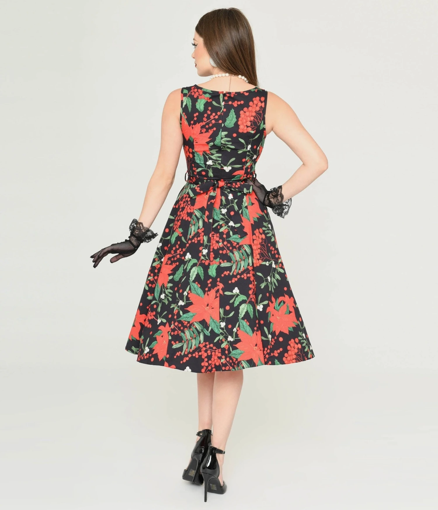 Black & Red Poinsettia Swing Dress