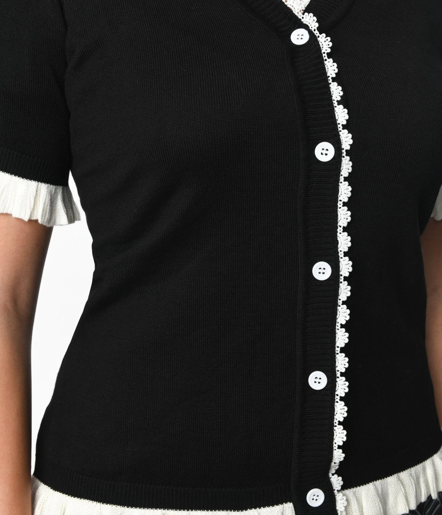 Black & White Frill Short Sleeve Cardigan