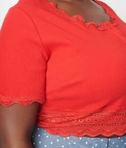 Be the first to review “Cherry Red Scallop Lace Knit Crop Top” Cancel reply
