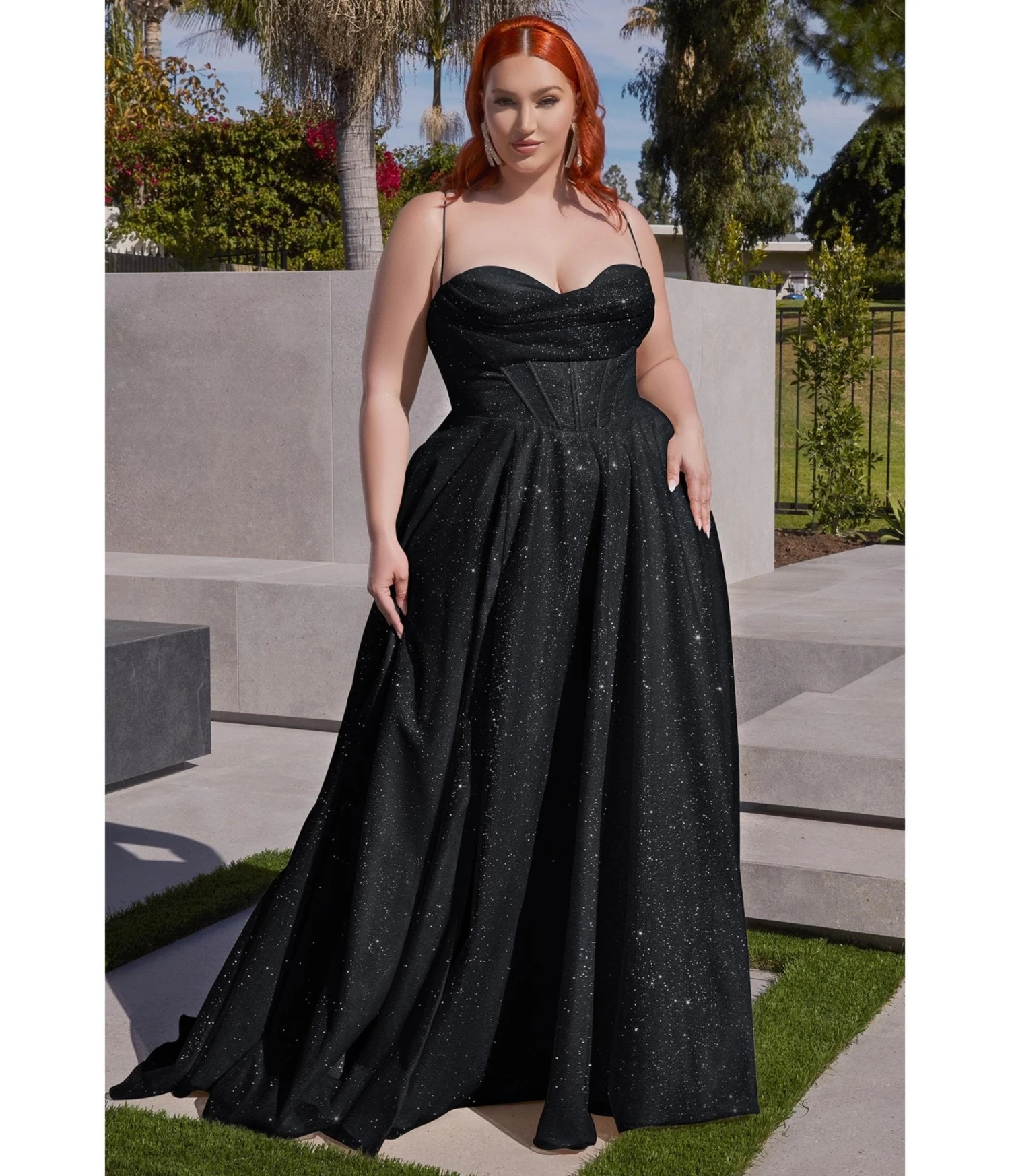Cinderella Divine Plus Size Black Glitter Corset Prom Ball Gown