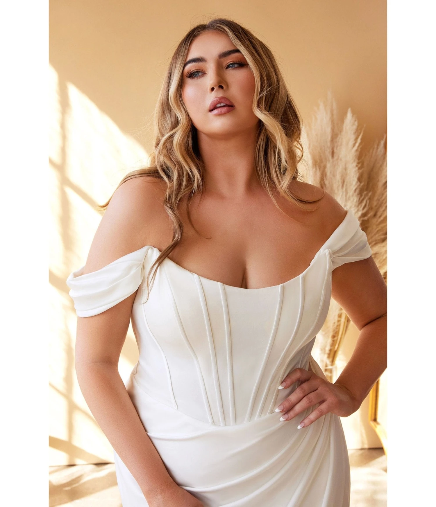 Cinderella Divine Plus Size White Off The Shoulder Corset Satin Bridal Gown