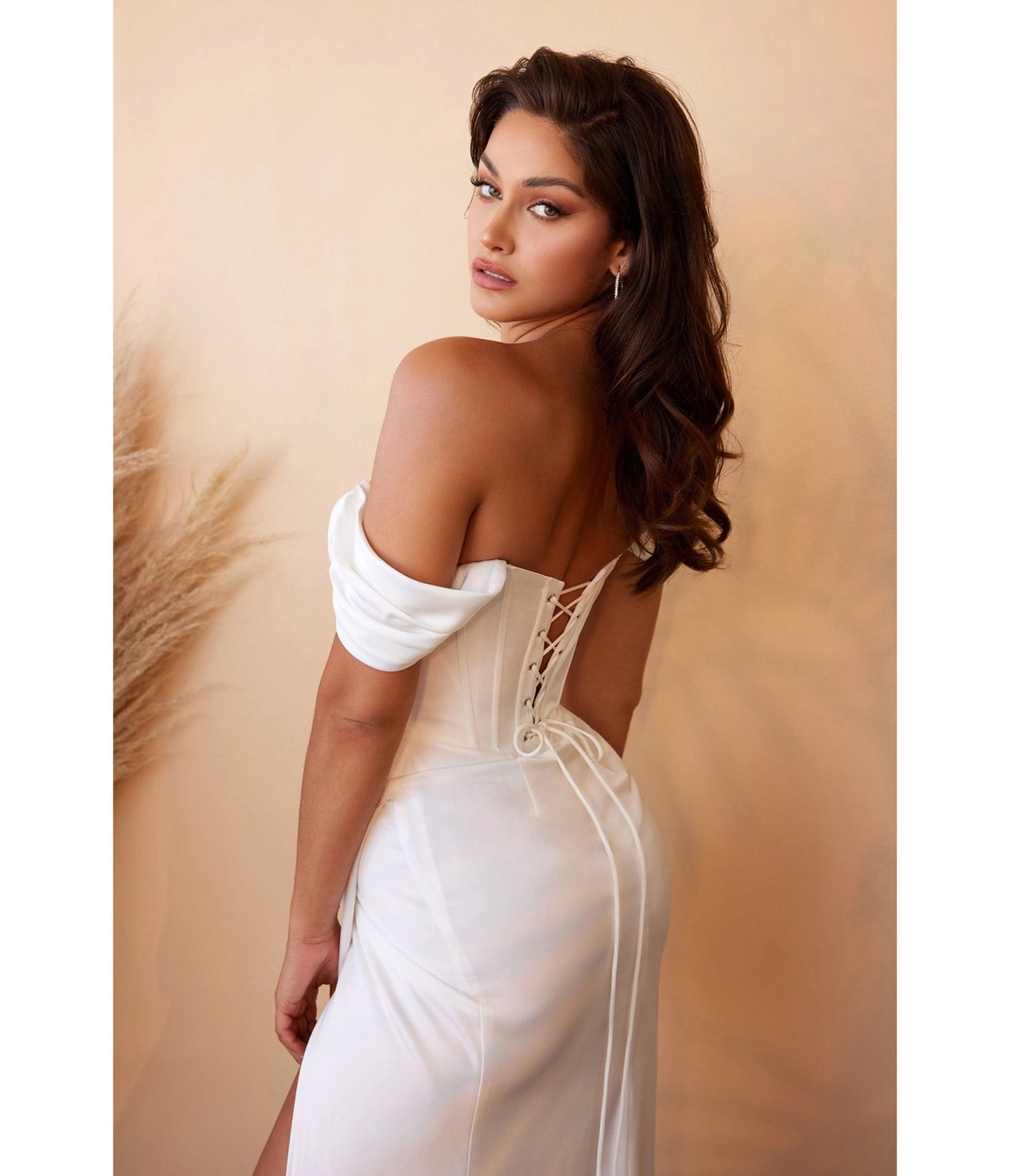 Cinderella Divine White Off The Shoulder Corset Satin Bridal Gown