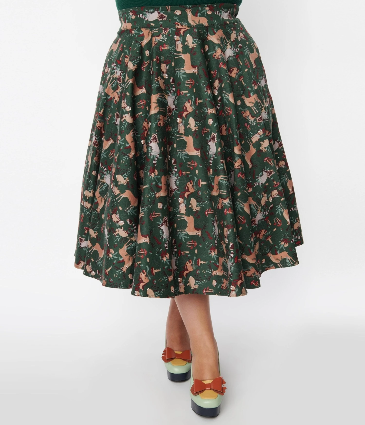 Green Woodland Creatures Swing Skirt