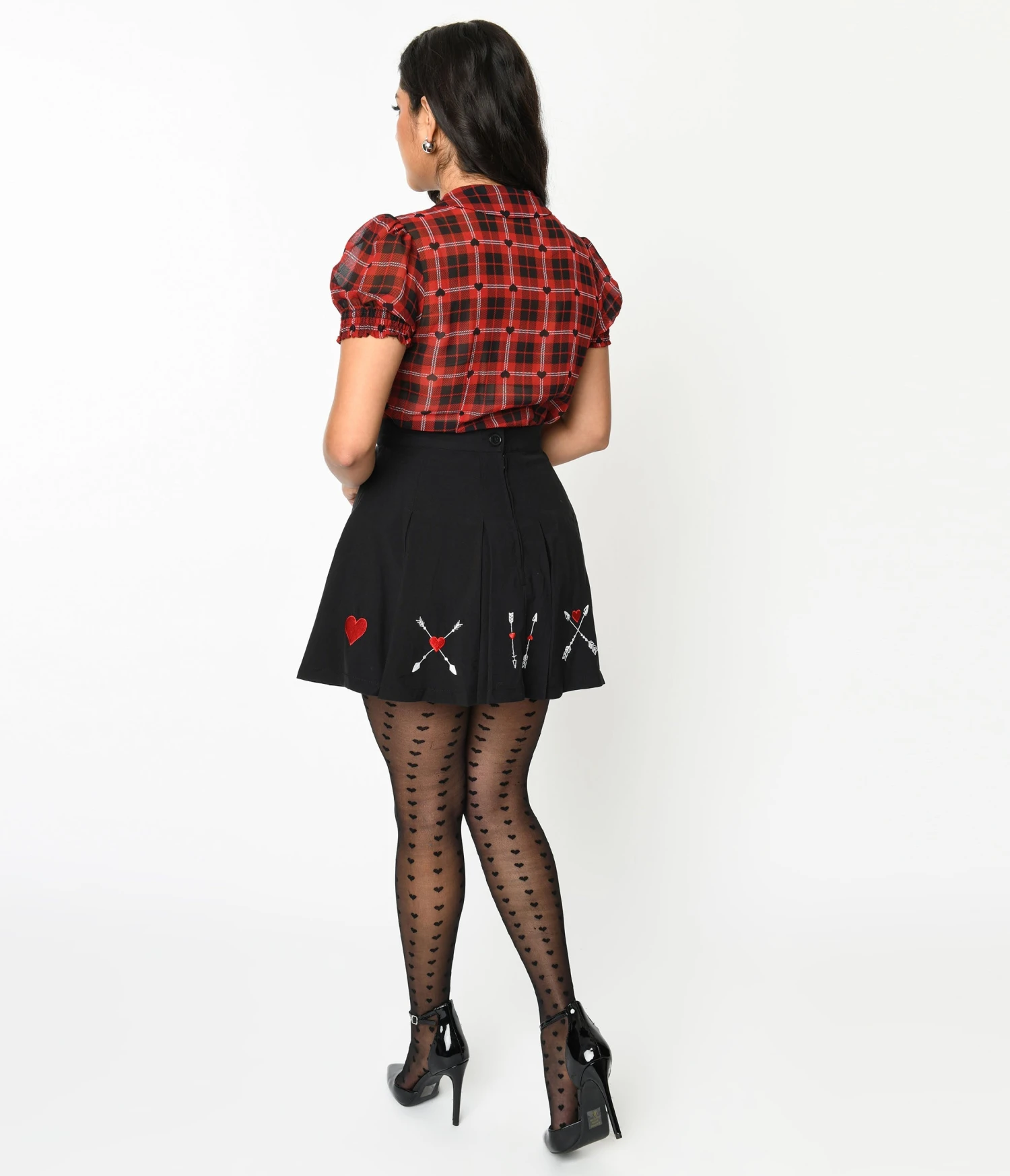 Hell Bunny Black & Embroidered Heart Border Amy Fit & Flare Skirt