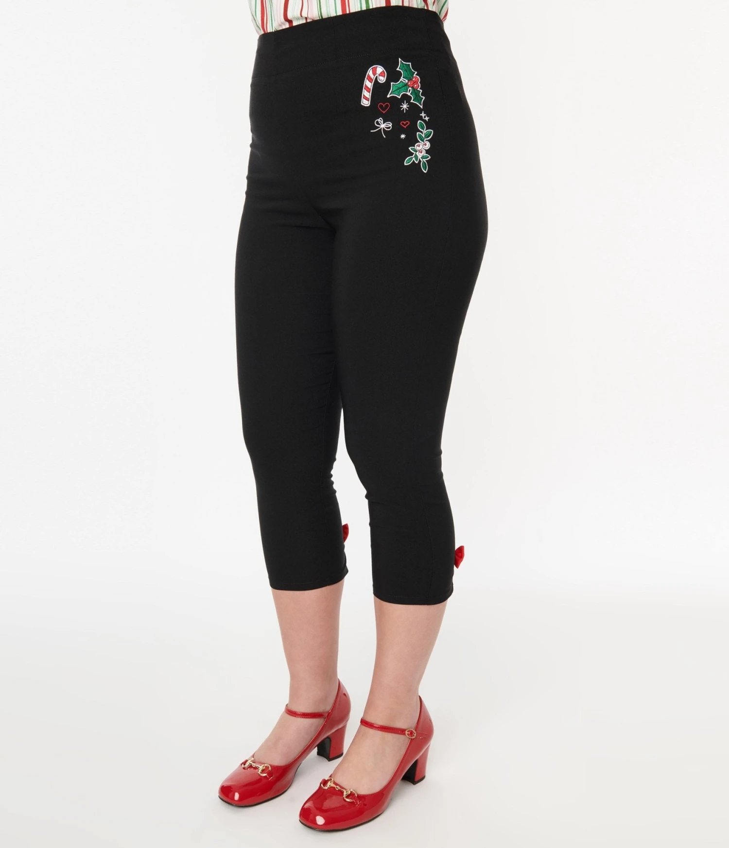 Hell Bunny Black Holiday Embroidered Natalie Capris
