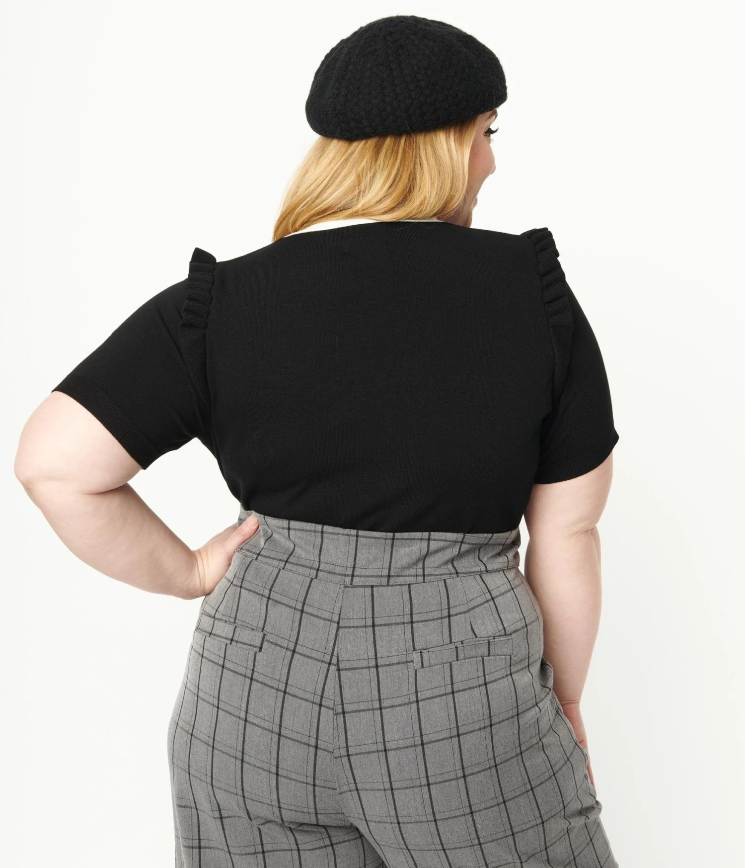 Hell Bunny Plus Size Black & White Collar Colette Blouse