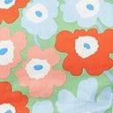 Green lightweight woven with light blue and red florals. Complete with smocked back and ruffled cap sleeves.