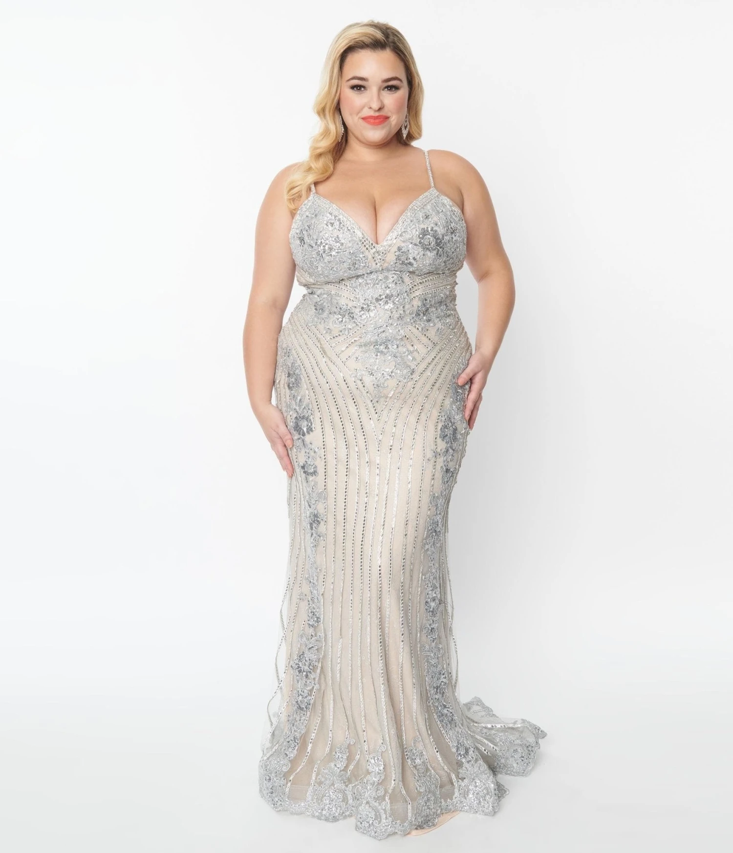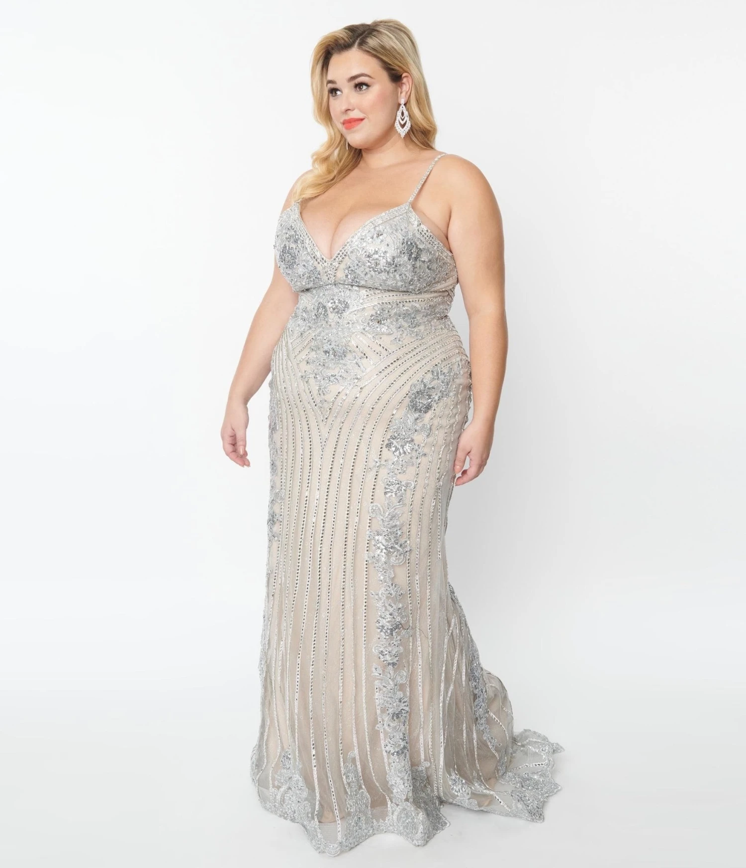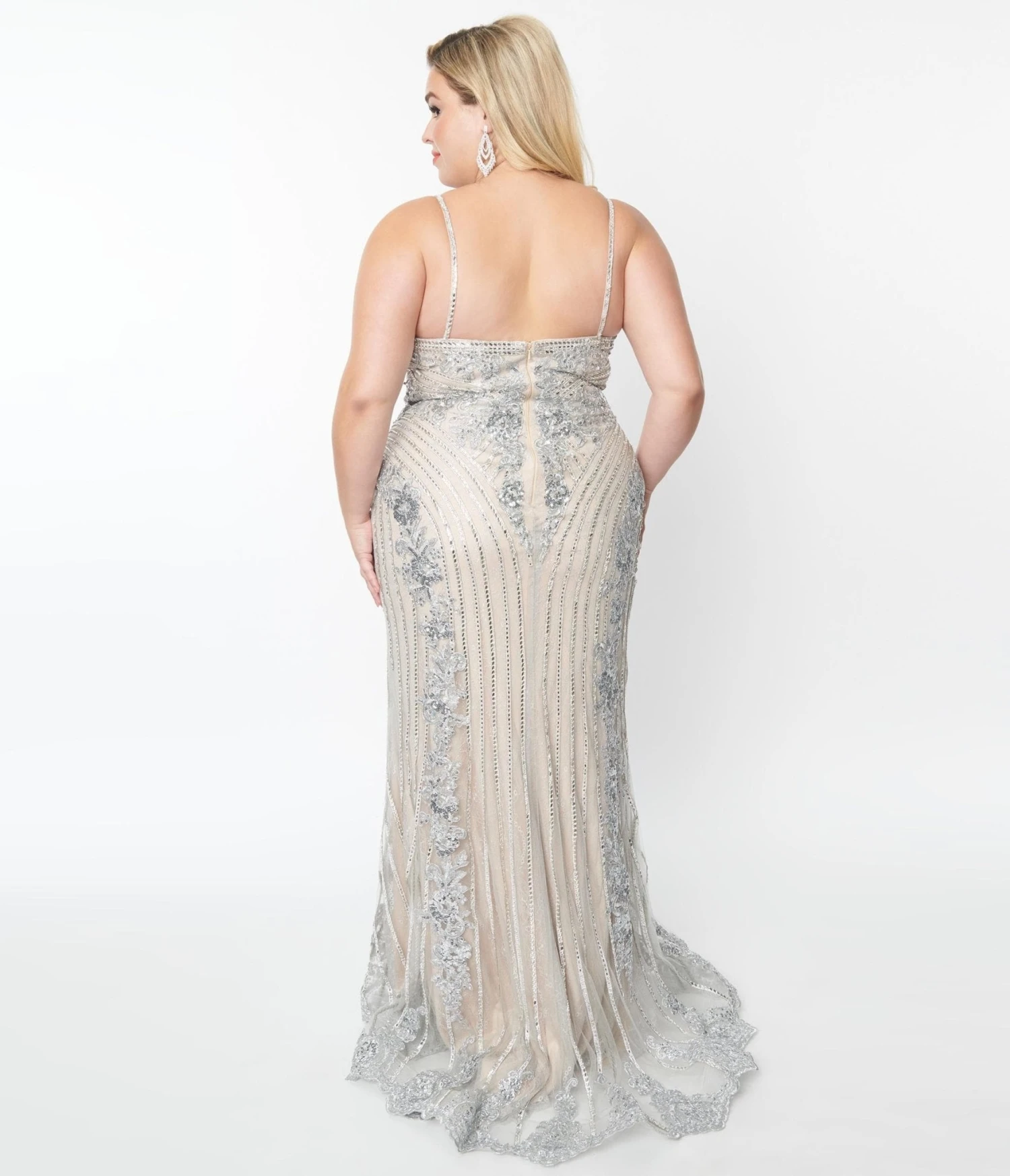 Plus Size 1930s Style Nude & Silver Deco Bridal Gown