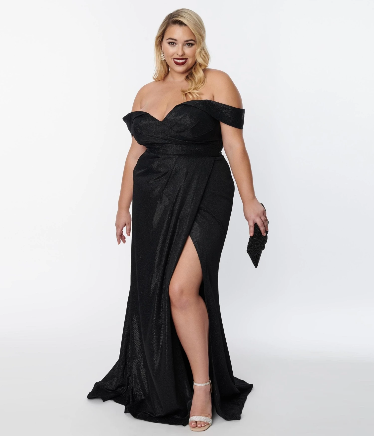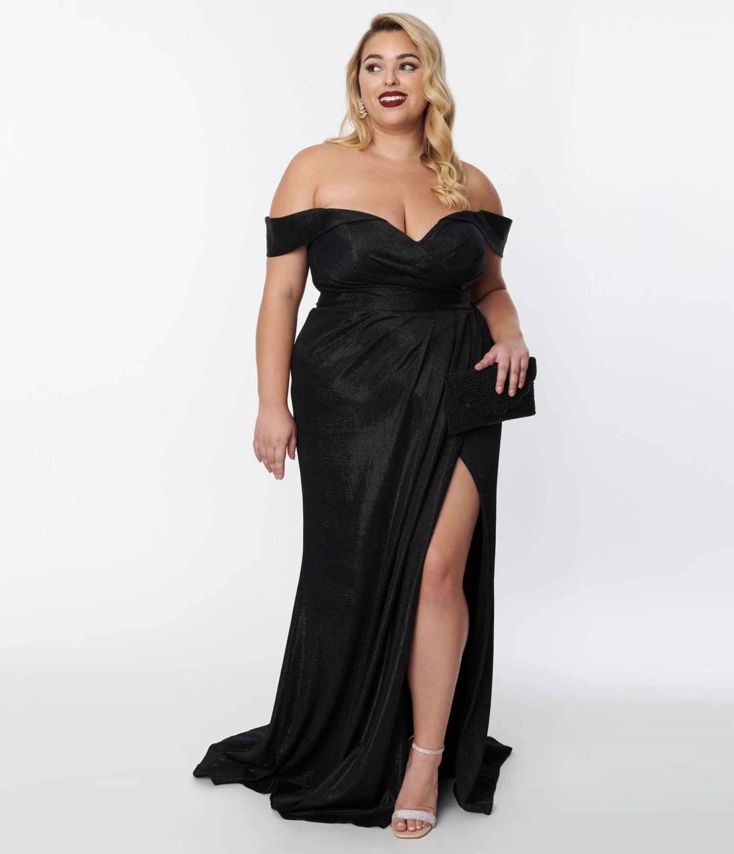Plus Size Elegant Black Shimmer Off The Shoulder Dress