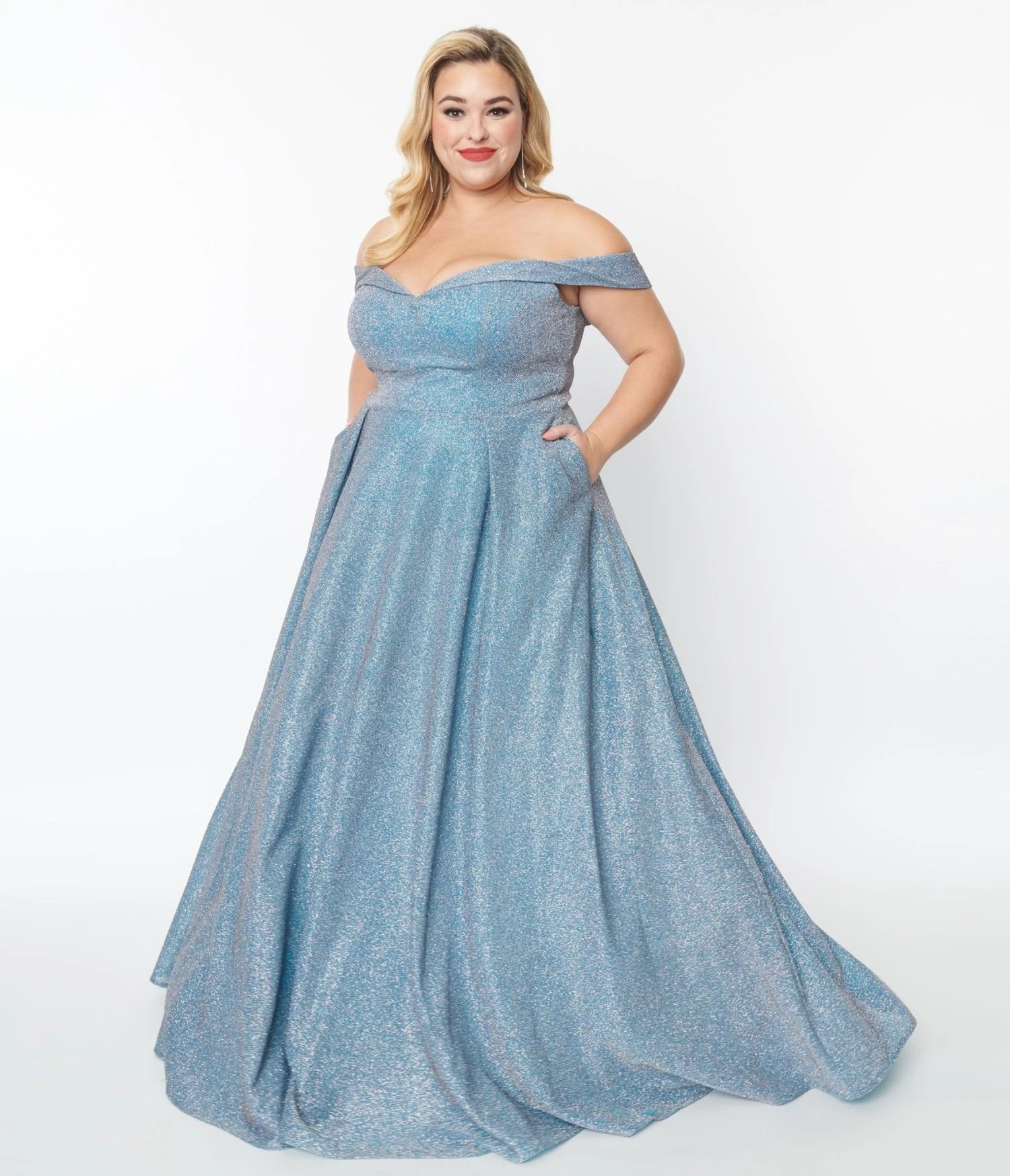 Be the first to review “Plus Size Light Blue Shimmer Off The Shoulder Ball Gown” Cancel reply