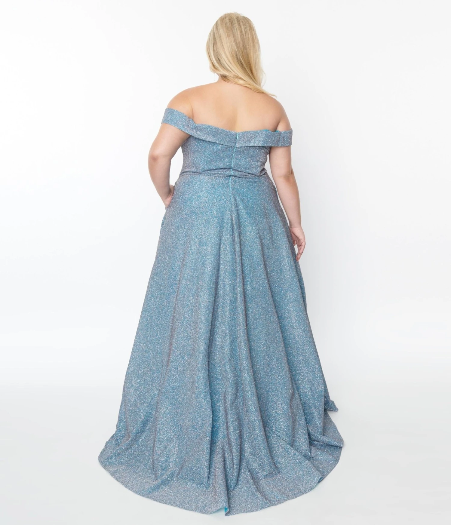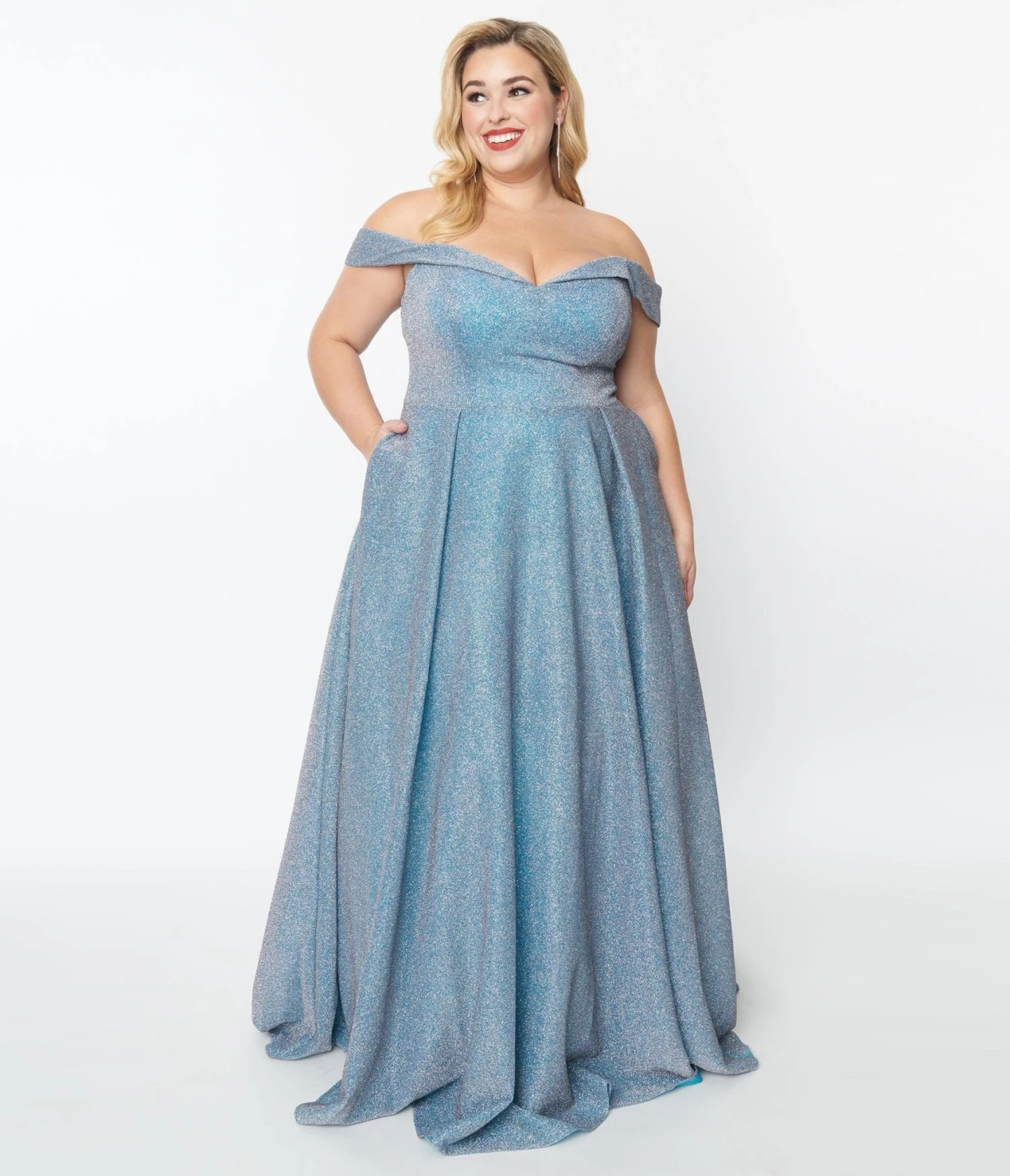 Plus Size Light Blue Shimmer Off The Shoulder Ball Gown