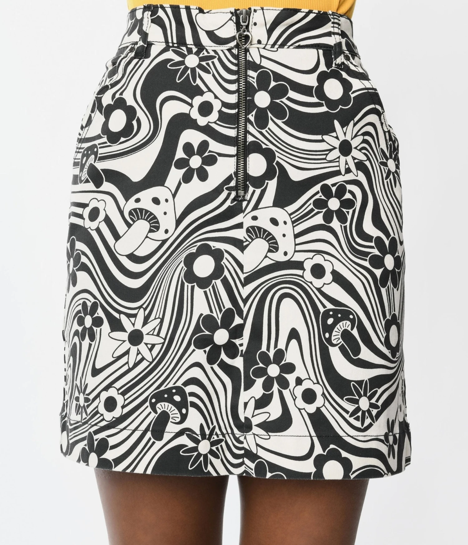 Retrolicious Black & White Groovy Penny Mini Skirt