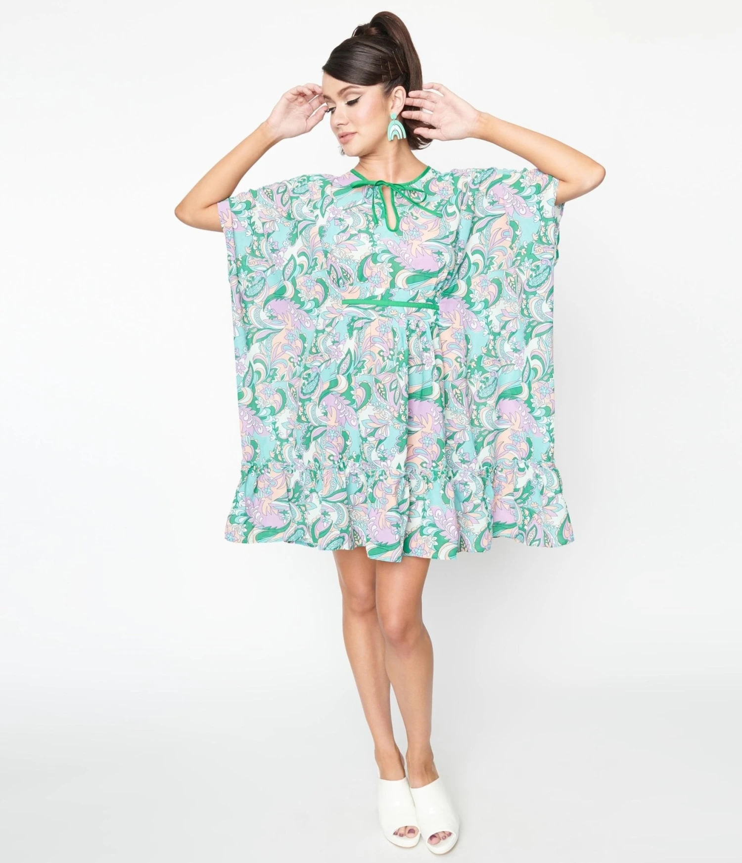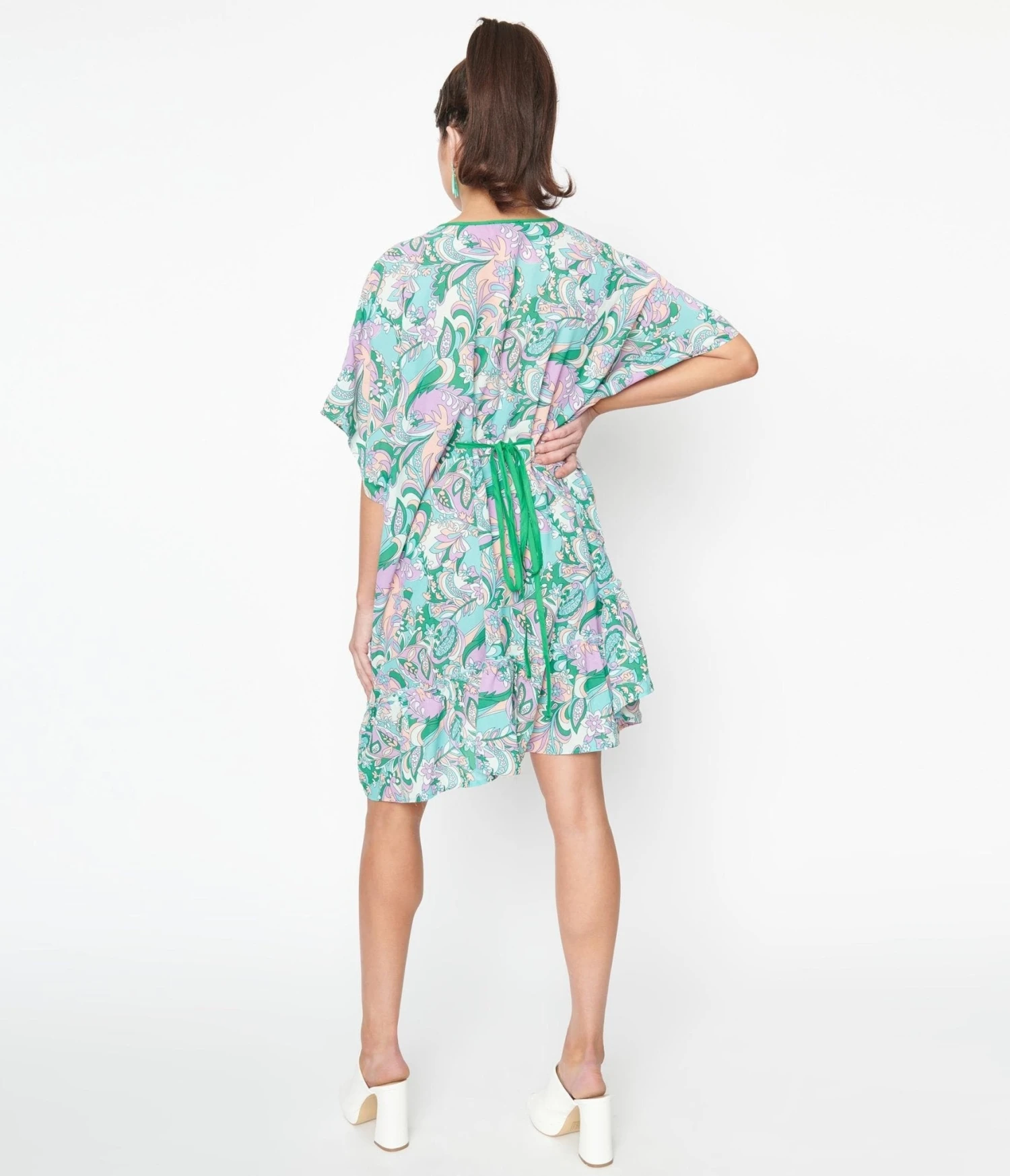 Smak Parlor Green & Purple Paisley Mini Caftan