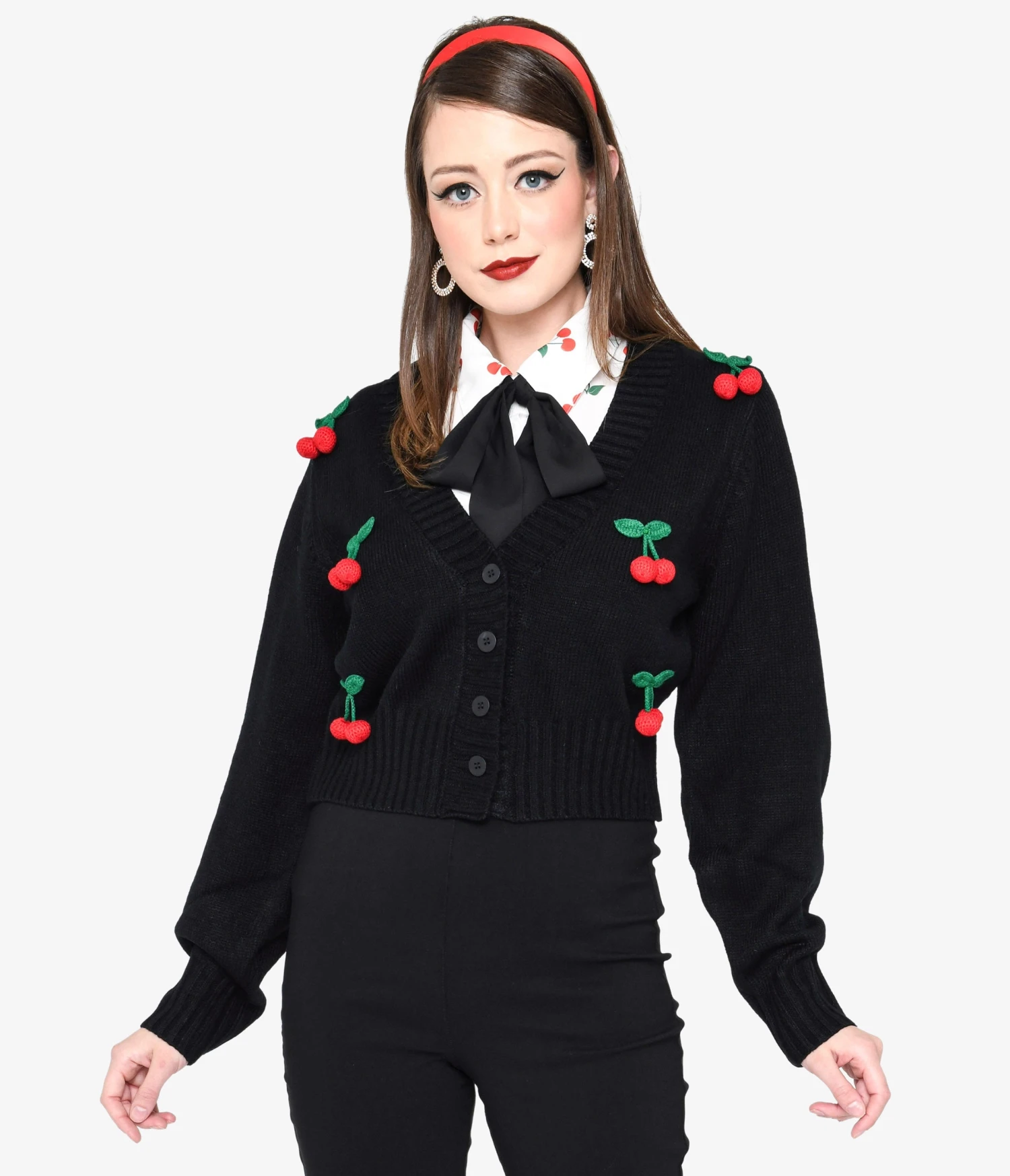 Smak Parlour Black Cherries Cropped Knit Cardigan