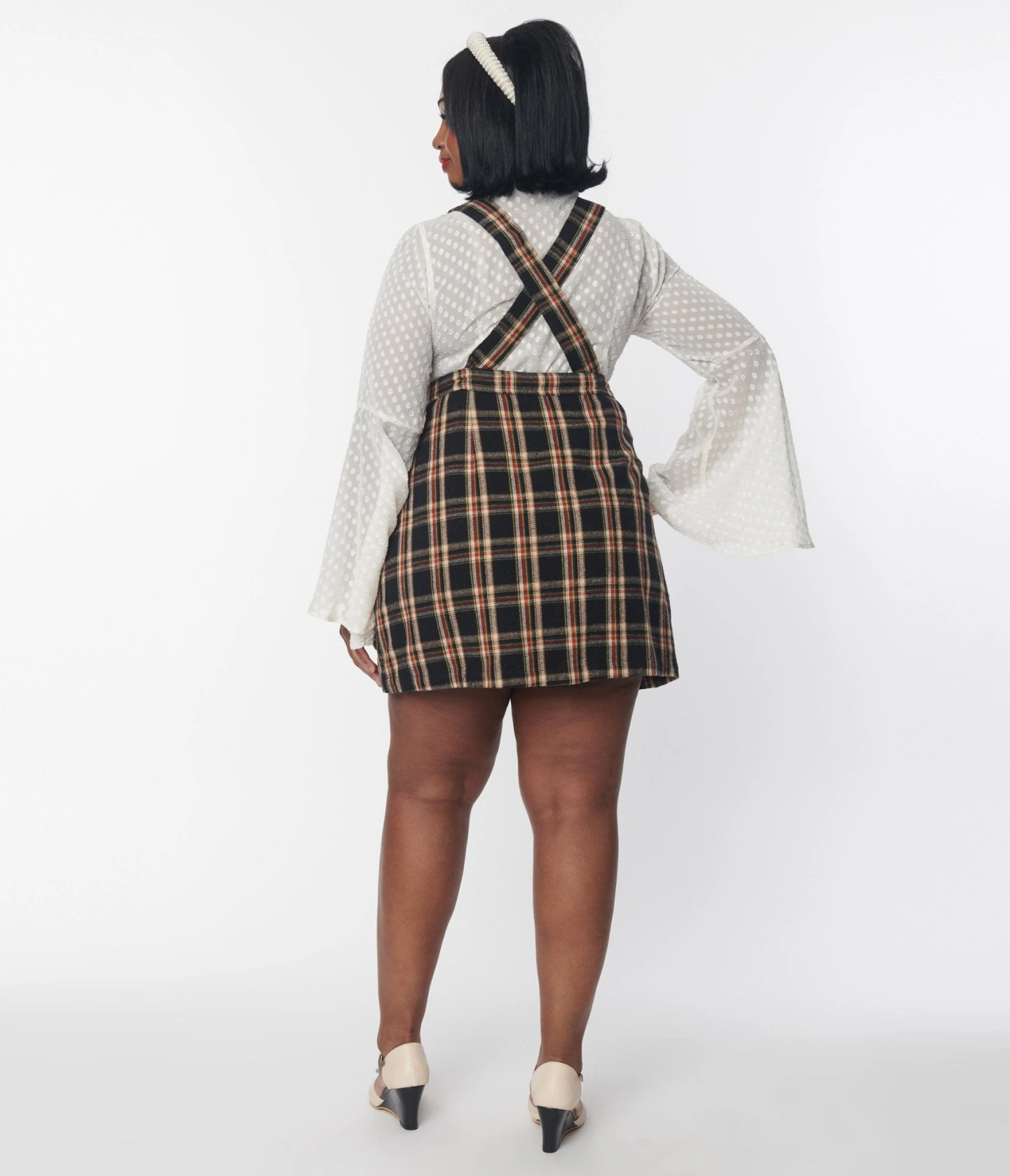 Smak Parlour Black & Orange Plaid Pinafore Skirt