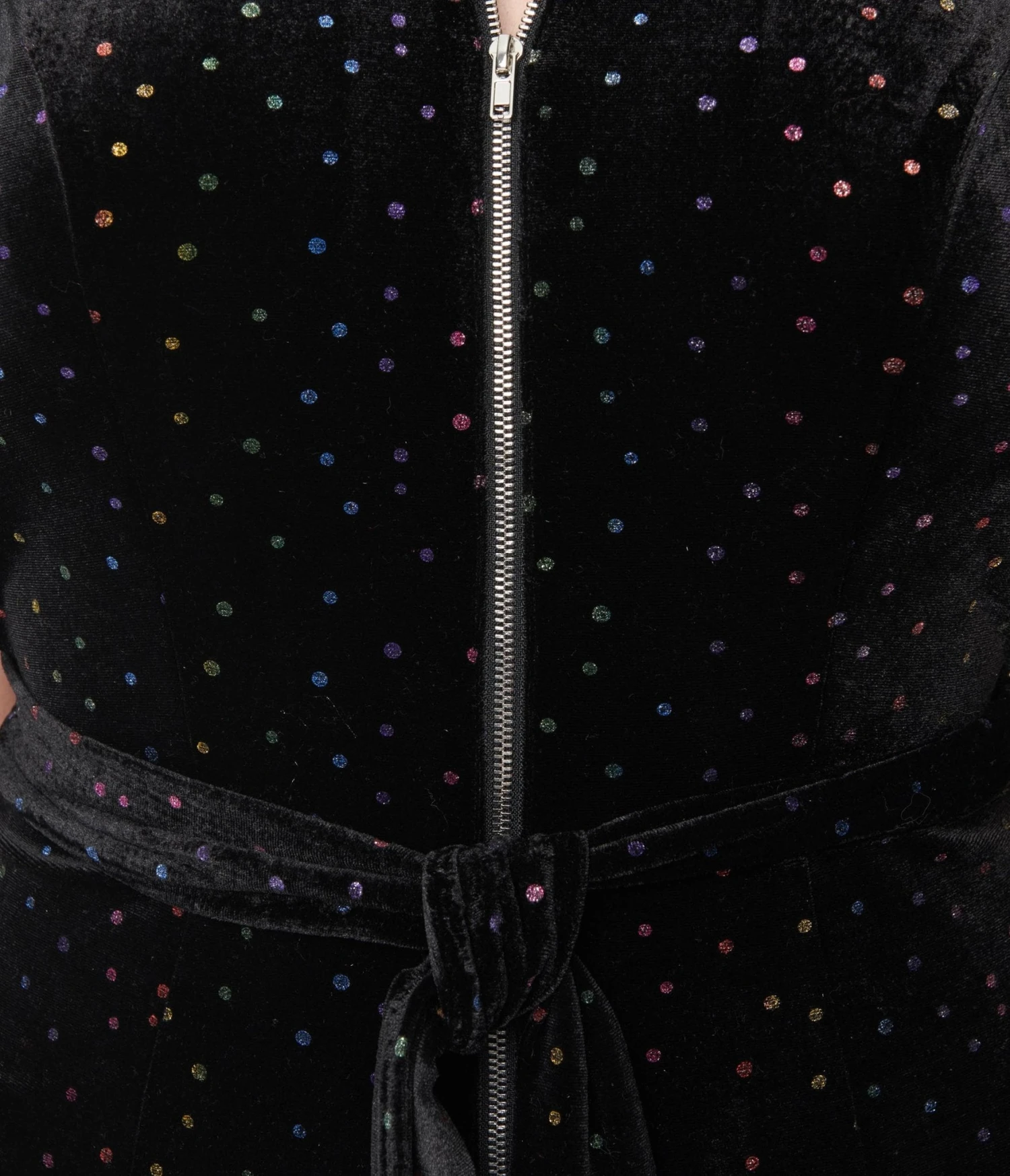 Smak Parlour Black Velvet & Rainbow Glitter Polka Dots Halter Jumpsuit