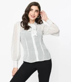 Unique Vintage Navy & White Pin Dot High Waist Louise Swim Bottoms