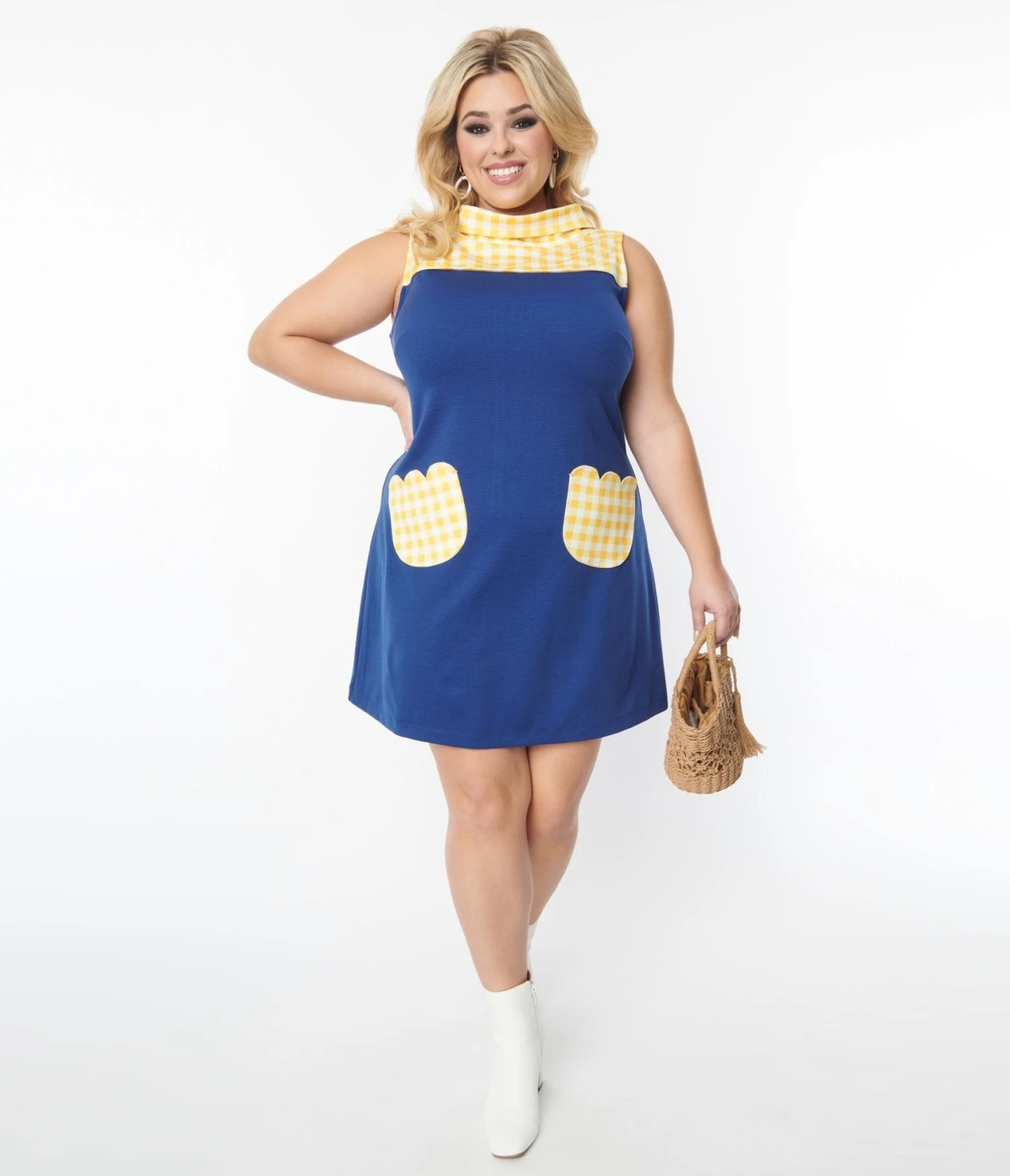 Smak Parlour Plus Size Navy & Yellow Gingham Haute Gossip Mini Dress