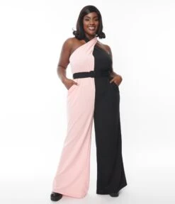 Be the first to review “Smak Parlour Plus Size Pink & Black Colorblock Draped Darling Jumpsuit” Cancel reply
