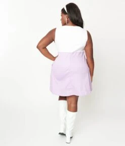 Be the first to review “Smak Parlour Plus Size Retro Style White & Lavender Love Flower Power Shift Dress” Cancel reply