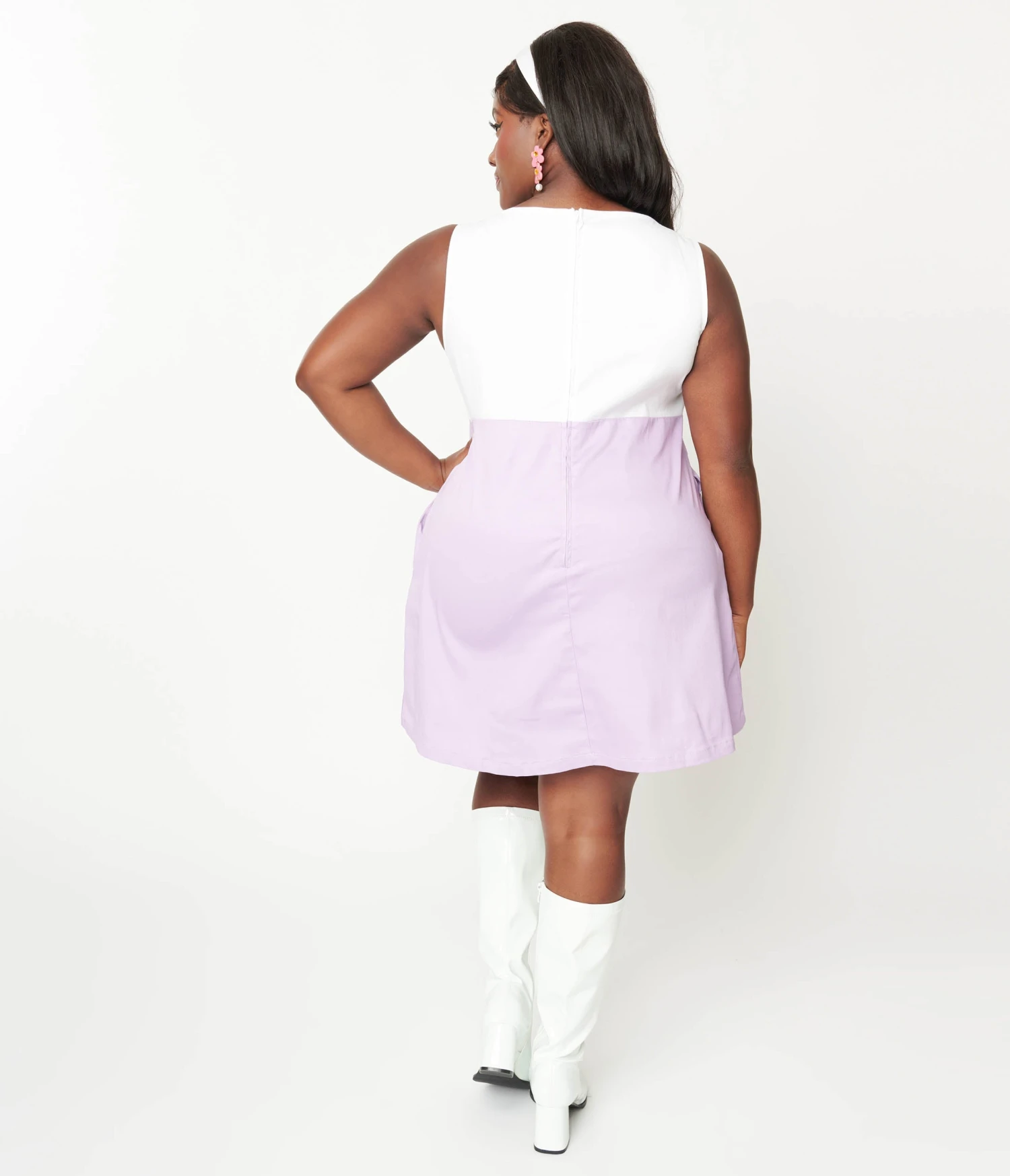 Smak Parlour Plus Size Retro Style White & Lavender Love Flower Power Shift Dress
