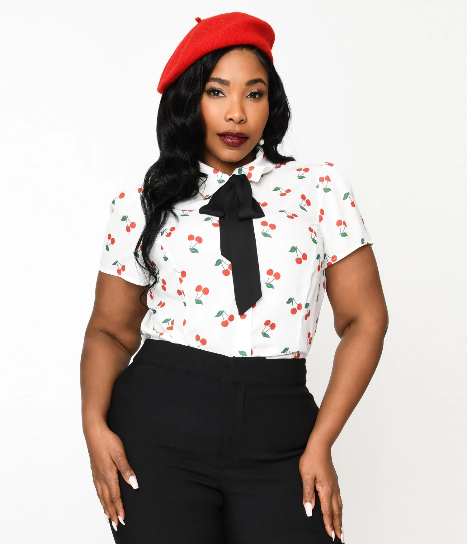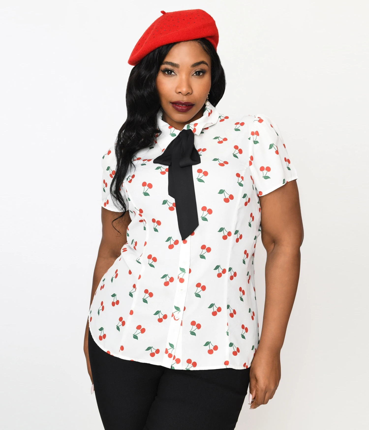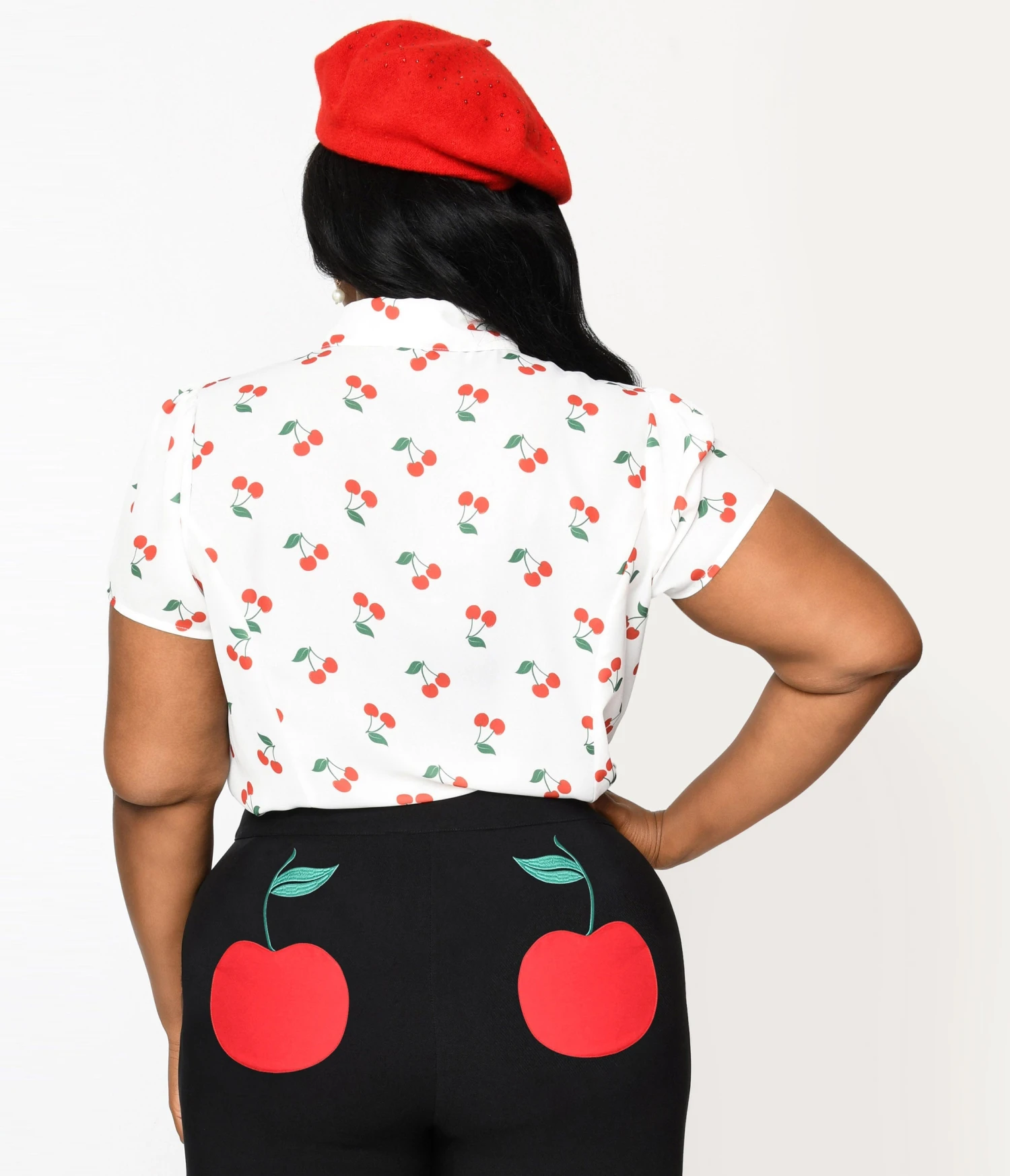 Smak Parlour Plus Size White & Cherries Power Play Blouse