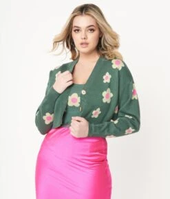 Teal Green & Mint Daisy Cardigan