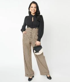 Be the first to review “Unique Vintage Black & Beige Plaid Thelma Suspender Pants” Cancel reply