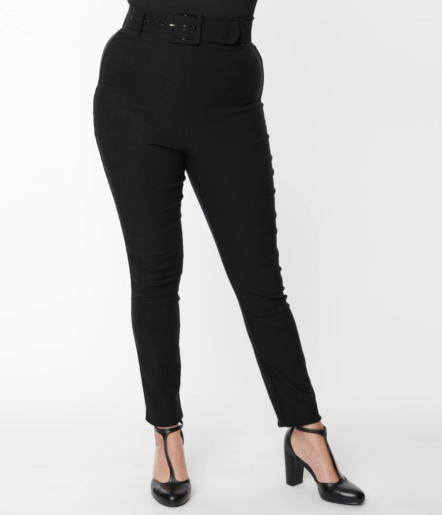 Unique Vintage Black Belted Rizzo Cigarette Pants