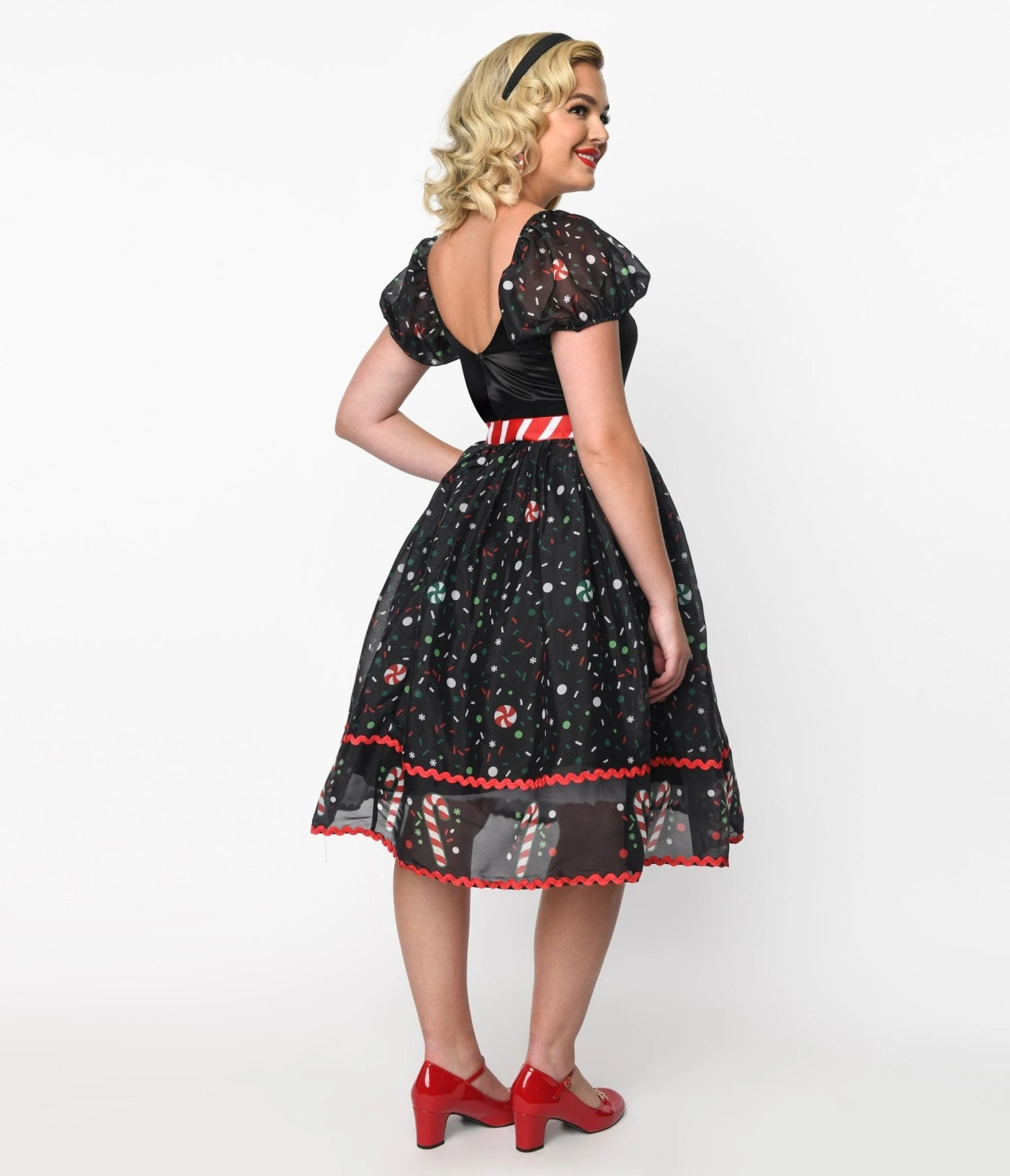 Unique Vintage Black Candy Cane Sprinkles Swing Dress