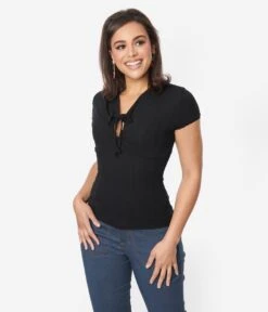 Be the first to review “Unique Vintage Black Keyhole Pointelle Knit Top” Cancel reply