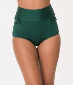 Unique Vintage Navy & White Gingham Monroe High Waist Swim Bottom
