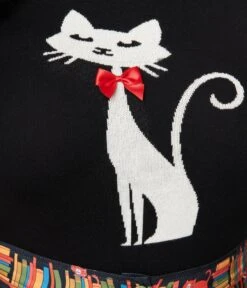 This adorable 1950s style sweater is crafted in a soft black knit featuring a sweet white cat. Complete with short sleeves.