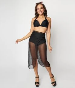 Unique Vintage Black Wrap Sarong Coverup