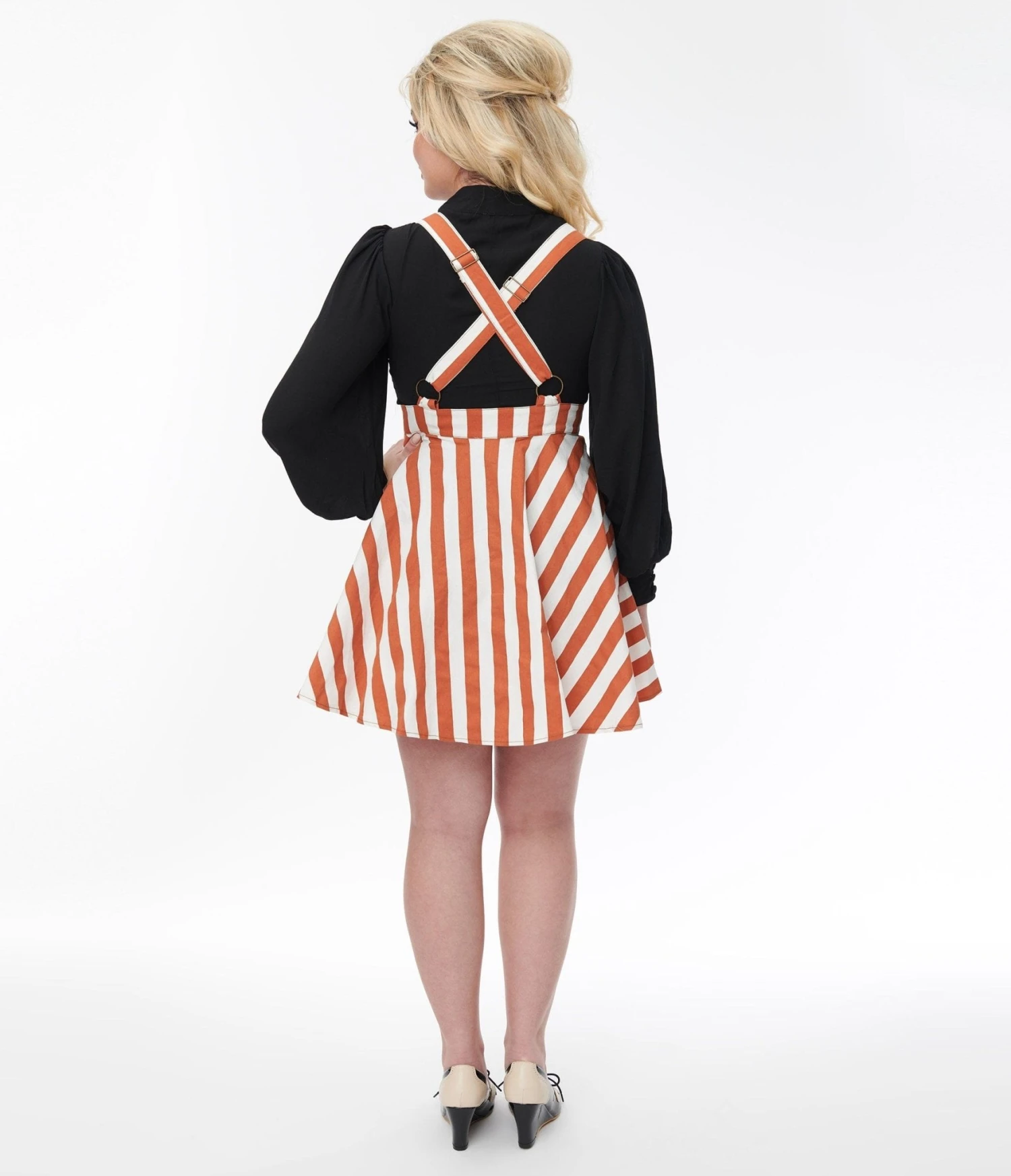 Unique Vintage Burnt Orange & White Stripe Snap Front Pinafore