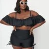 Unique Vintage Plus Size Blue Gingham Ruffle High Waist Swim Bottom